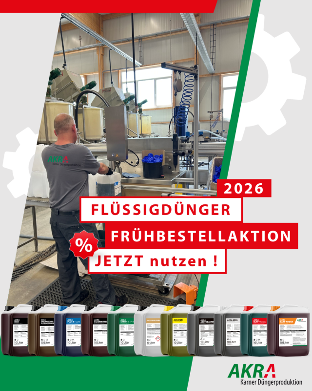 Bis zum 31.12.2025 Flüssigdünger beim Außendienst bestellen und sparen.
